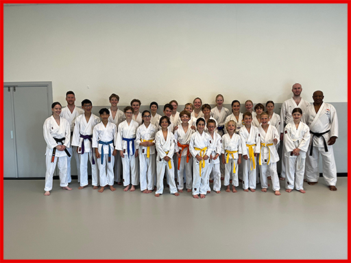 We begonnen ‘s ochtends om 9 uur met een gastles Pencak Silat onder leiding van Gwen en Hanne. De manier waarop men bij Pencak Silat beweegt is anders dan hoe we bij karate bewegen, maar de kinderen luisterden aandachtig en vol enthousiasme naar de aanwijzingen en deden goed mee. Na afloop van de les werden we nog getrakteerd op een mooie demonstratie van Hanne en Gwen, waar de kinderen zichtbaar van onder de indruk waren.