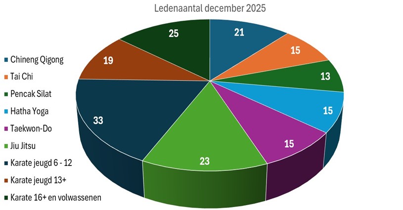 En het gaat goed met Dschen Dui!!! We mogen ons op dit moment gelukkig prijzen met een ledenaantal van 179 en er komen nog steeds volop aanmeldingen voor proeflessen bij diverse disciplines binnen. Veel leden maakt vaak ook een gezonde vereniging en daar gaan we natuurlijk altijd voor, waarbij we uiteraard blijven streven naar de gewenste kwaliteit voor iedereen binnen Dschen Dui.